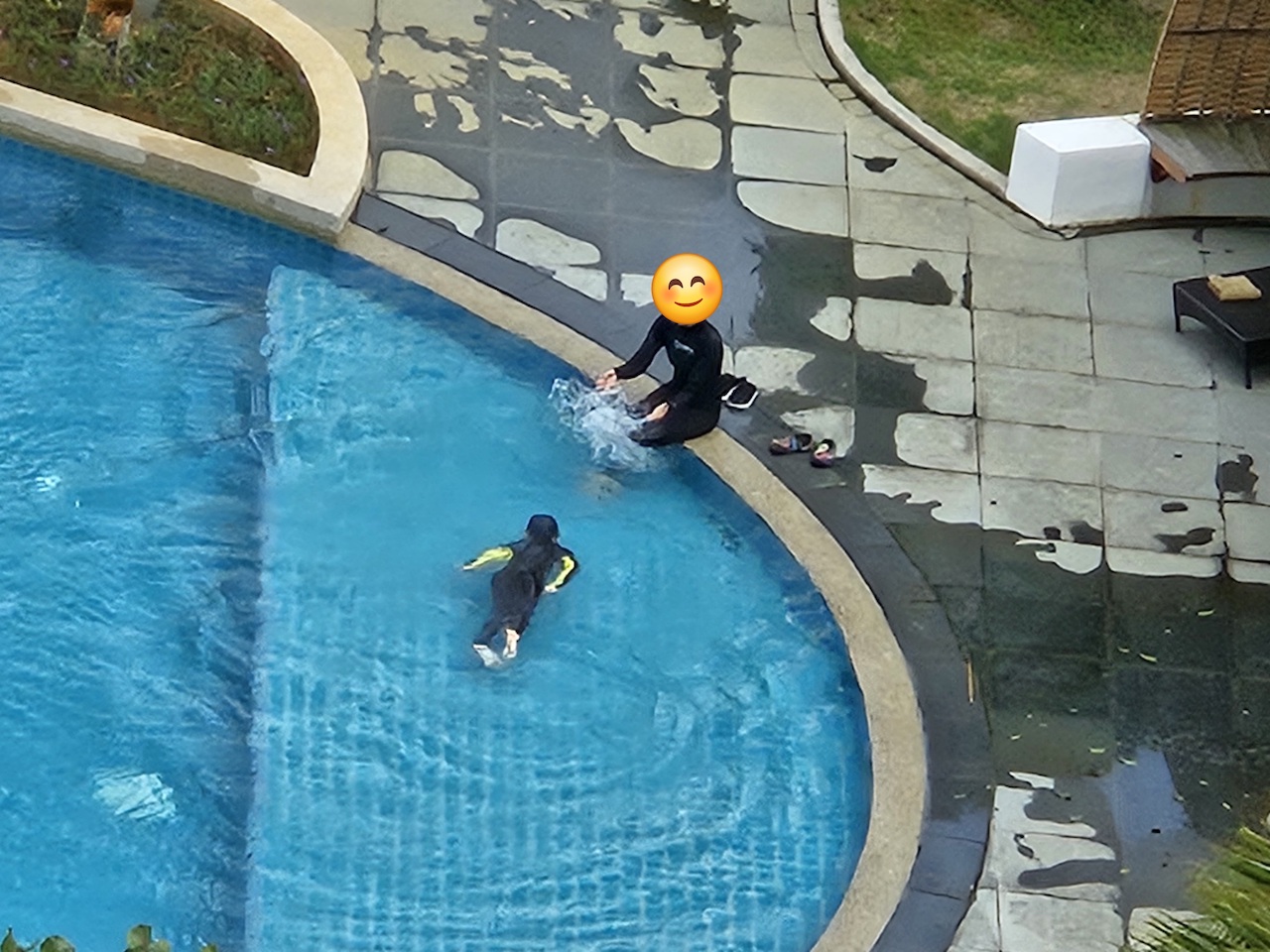 제가 머물렀던 겨울(1월~2월)에도 기온이 28~32도 정도의 기온이었기에 한낮에 해가 비치면 따뜻하게 수영을 할 수 있었지만, 수영장 구조에 따라서 그늘이 많이지는 레지던스의 경우, 한낮에도 물놀이 중 추위를 느끼곤 했습니다. 특히 햇볕이 잘 들어서 상대적으로 따뜻하다고 느꼈던 알마스 스위트도 바람이 불면 조금 춥다고 느꼈습니다. 아이들을 동반한 한국 분들 대부분은 아이용 웻슈트를 준비해 오셔서 아이들에게 착용시키고 수영을 시키곤 했습니다.