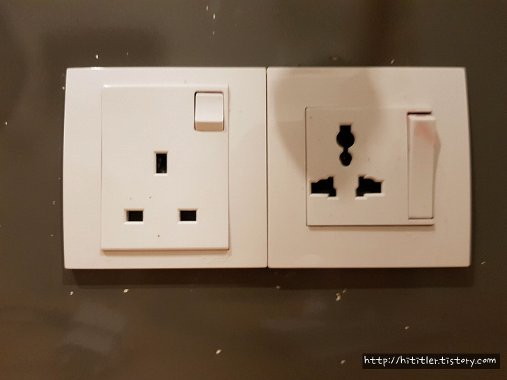 또한 위의 말레이시아 콘센트 사진을 보면, 우측에 스위치가 있는데, 이 부분에 멀티어댑터가 걸려서 헐거운 상태로 사용하게 되는 경우도 많습니다. 이런 상태에서 주변을 지나가다가 잠깐 잘못 건들거나 하면 접지가 잘 안 되는 문제도 종종발생하는데요.
