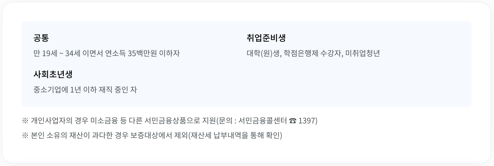 - 취업준비생(대학생, 대학원생, 학점은행제 수강자, 미취업청년) 또는 사회초년생