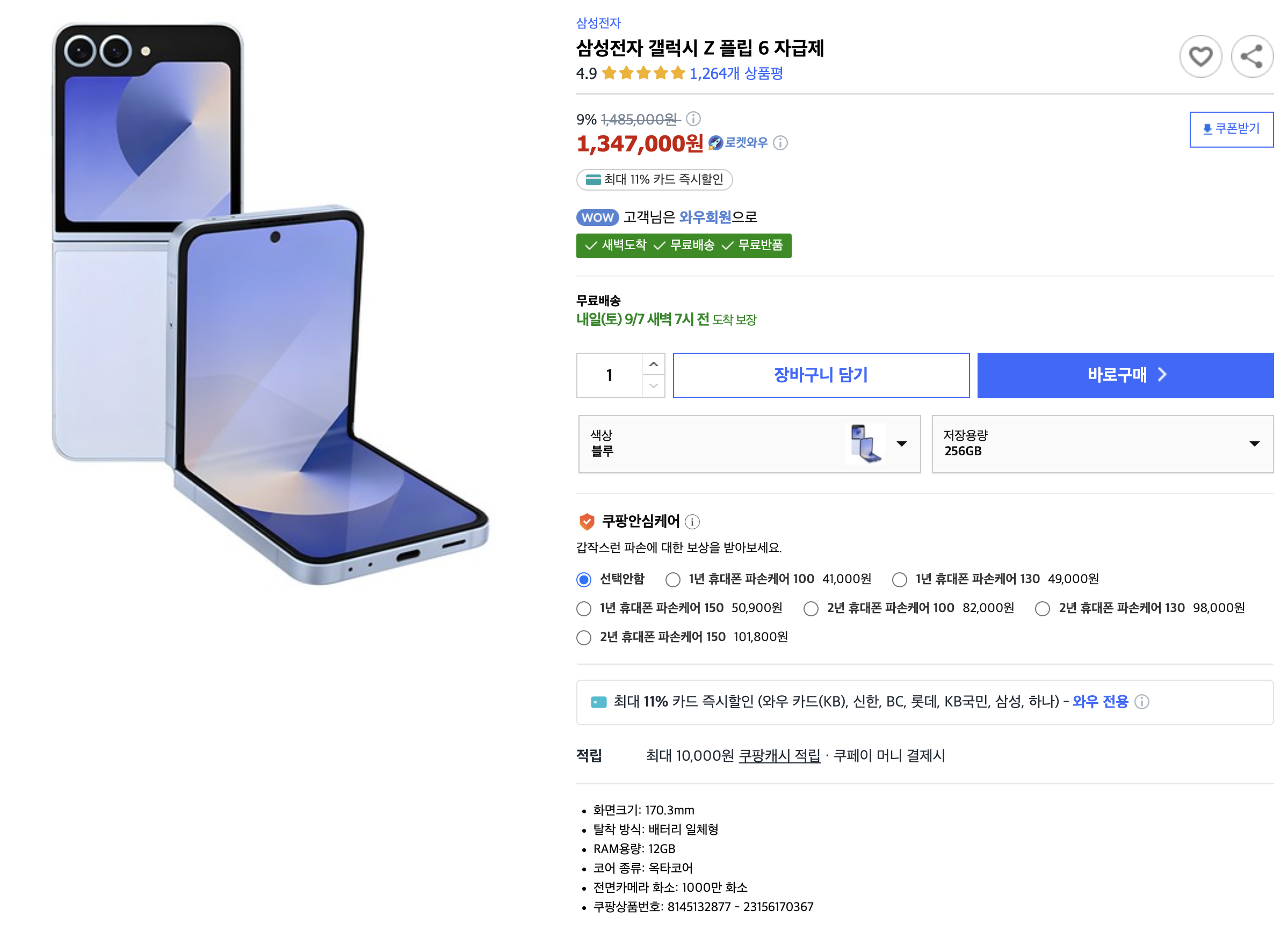 삼성전자 갤럭시 Z 플립 6 자급제 - 휴대폰 | 쿠팡