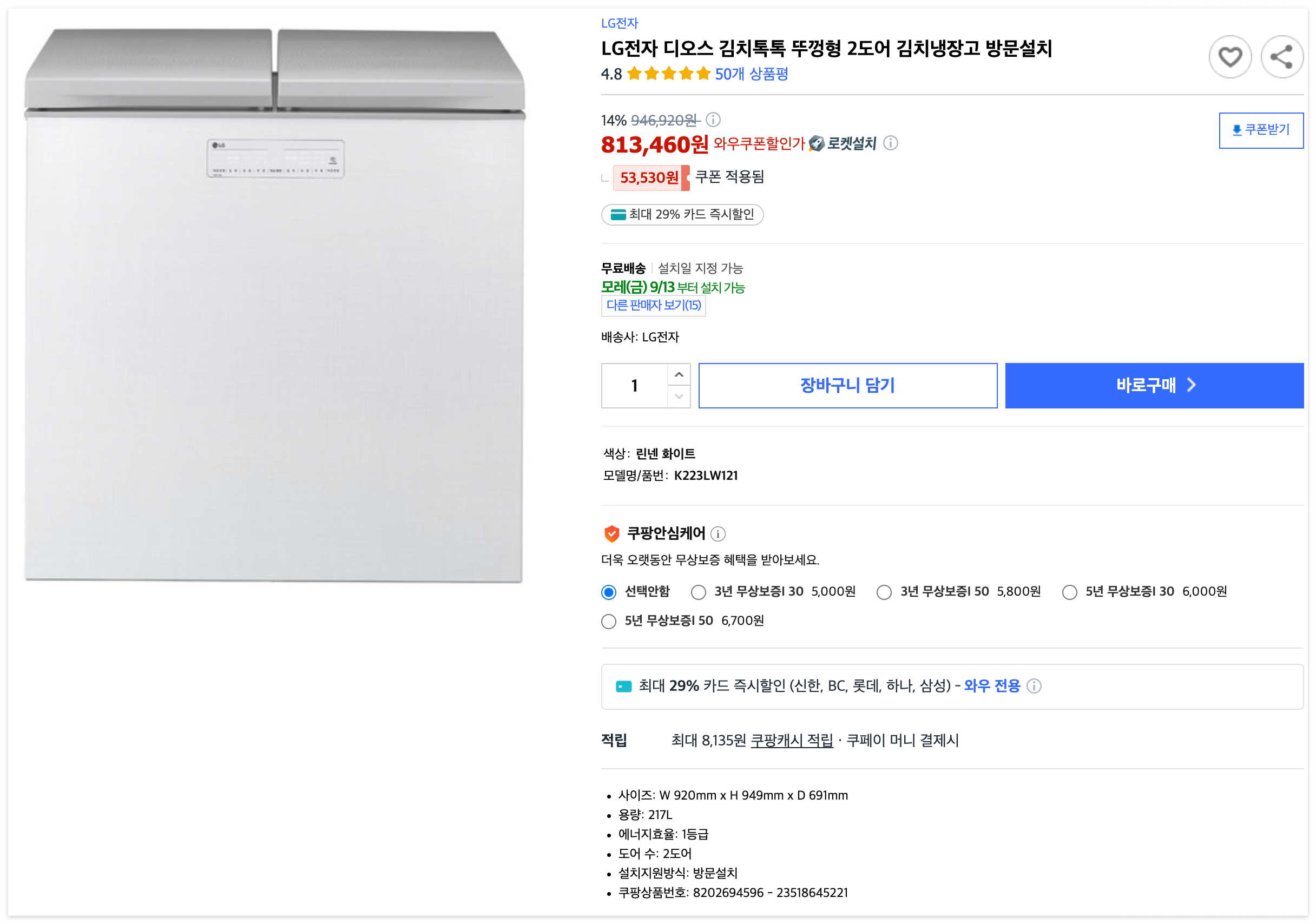 LG 디오스 김치냉장고 필요하신 분들은 아래 링크 통해서 얼른 구매하세요!