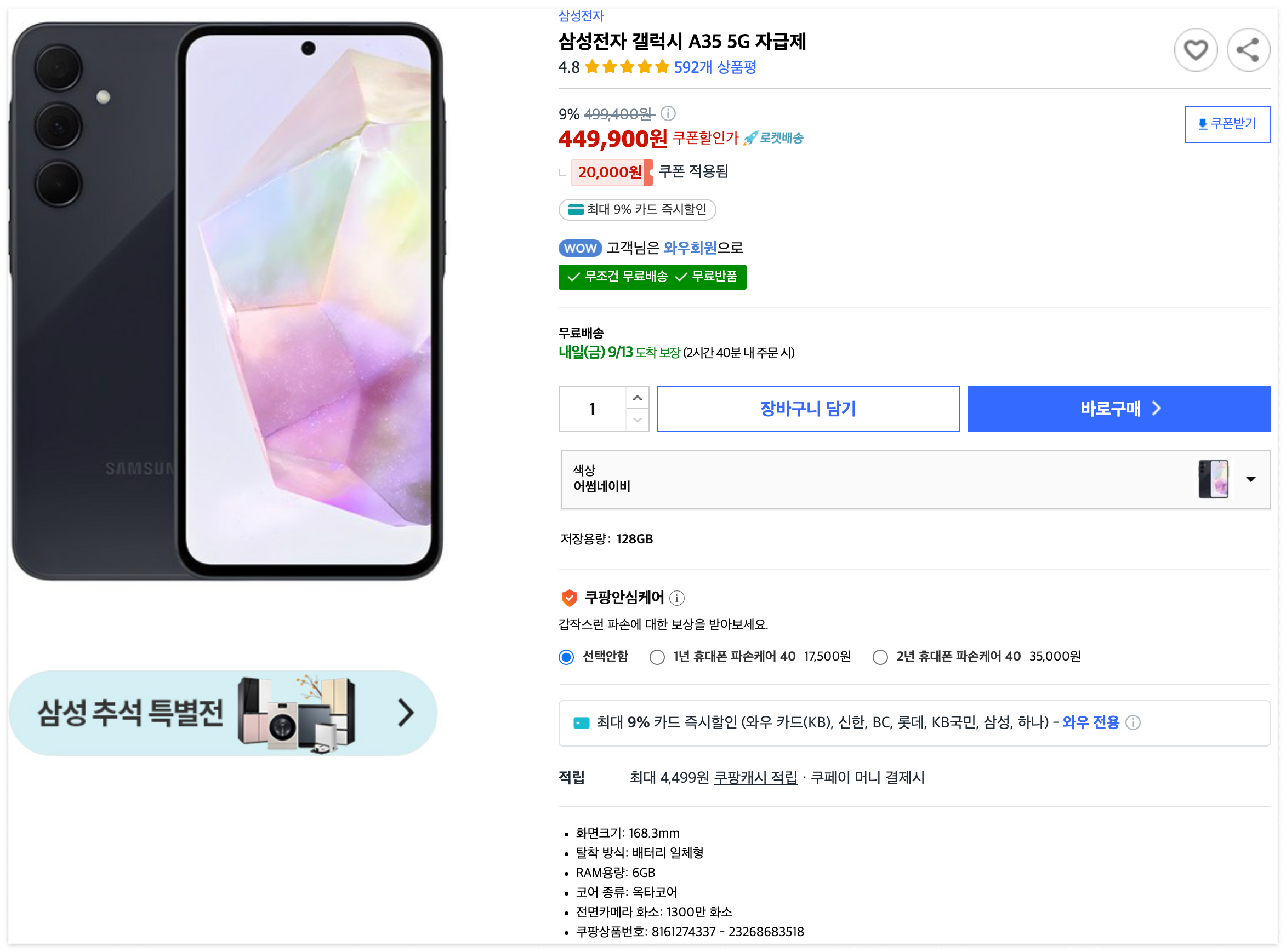 삼성전자 갤럭시 A35 5G 자급제 - 휴대폰 | 쿠팡