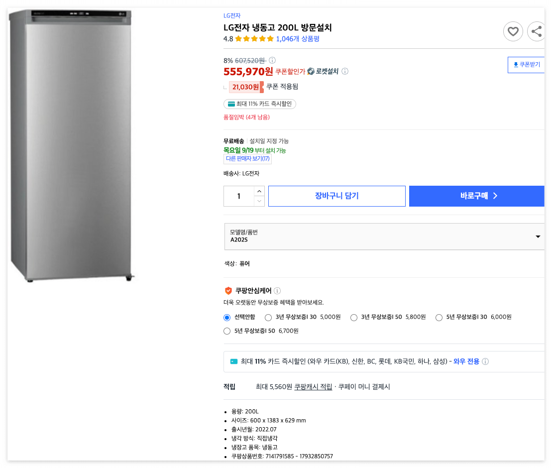 #LG #LG전자 #냉동고 #원동고 #A202S #200리터 #200L #LG냉동고 #핫딜 #특가 #최저가 #쿠팡 #로켓설치
