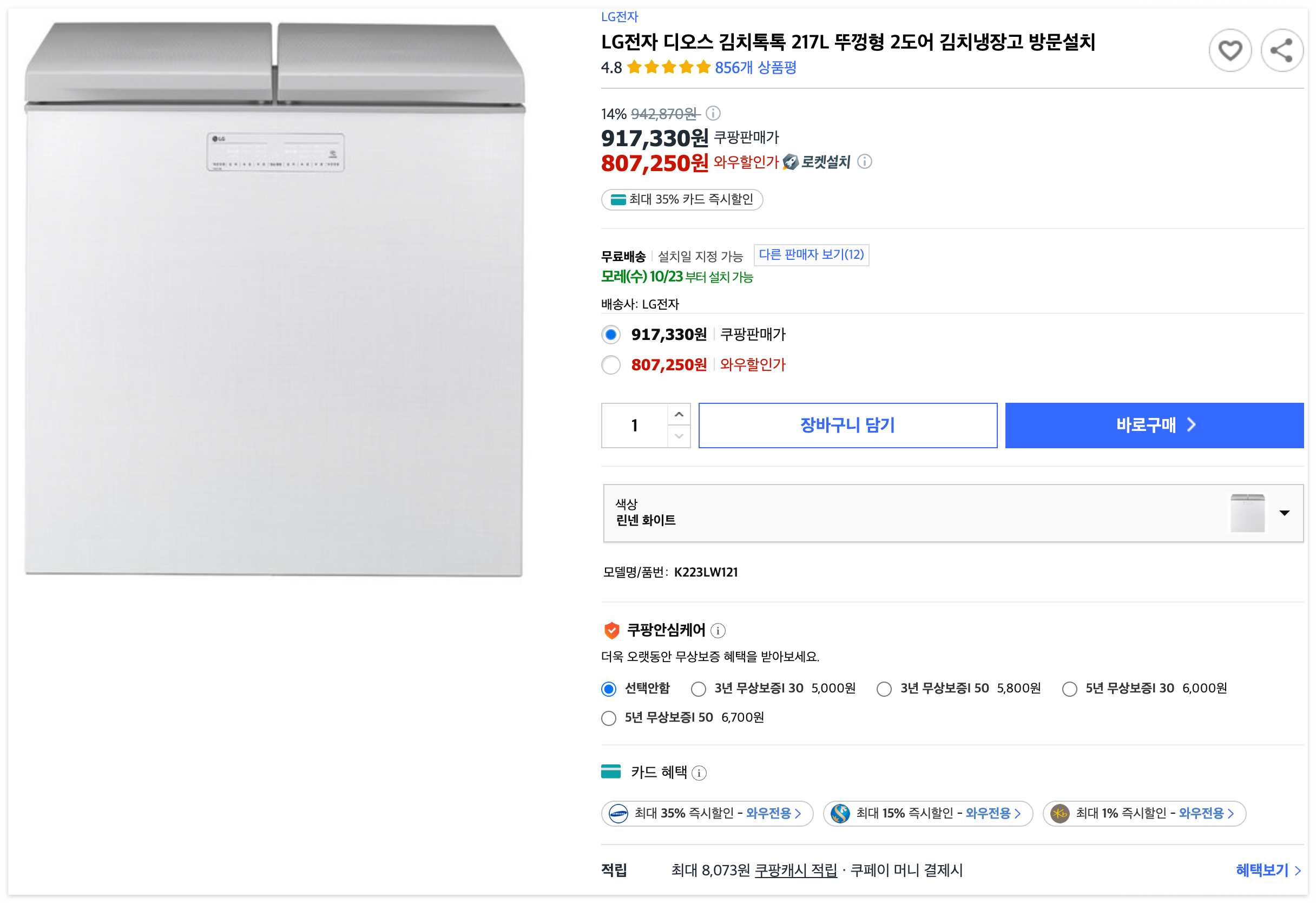 #LG #LG전자 #디오스 #김치톡톡 #김치냉장고 #2도어 #뚜껑형 #K223LW121 #LG냉장고 #1등급냉장고 #최저가 #핫딜 #특가 #쿠팡 #로켓설치